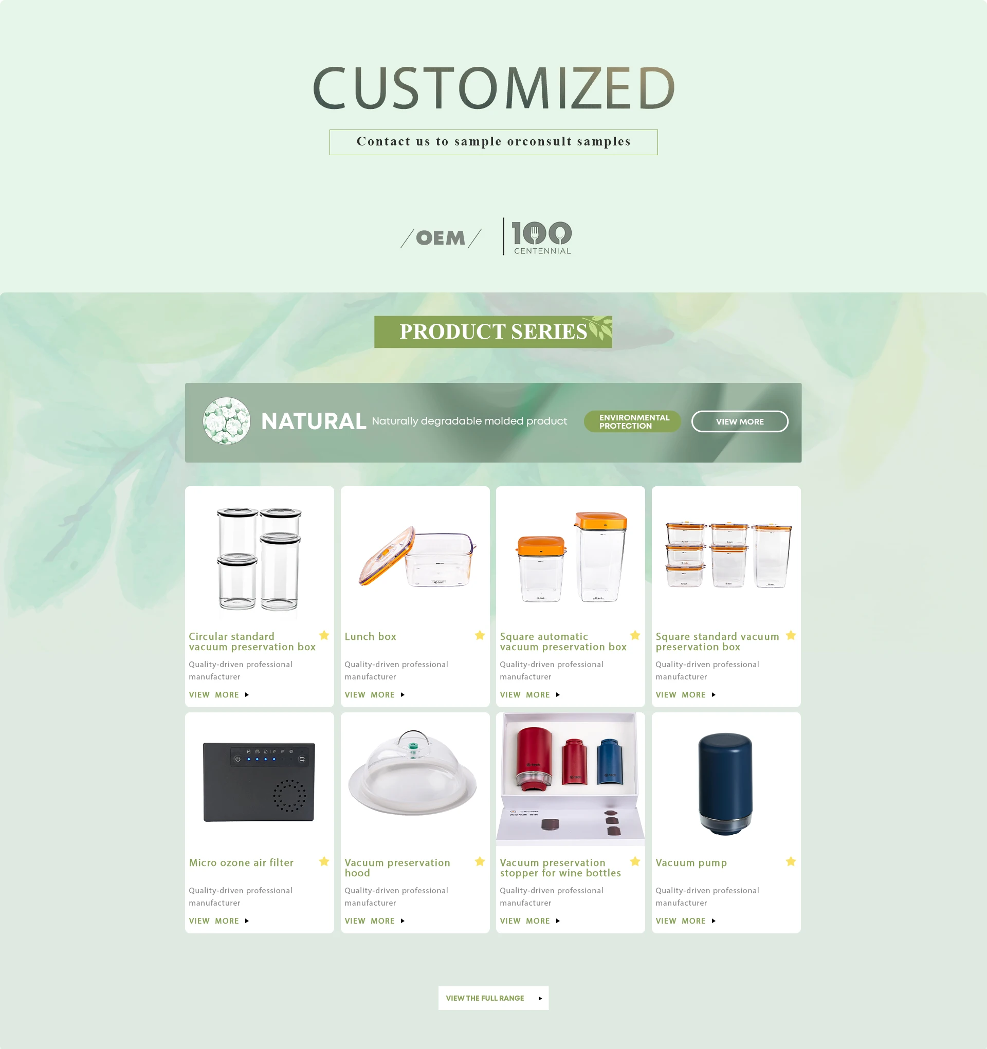 Principais produtos:Jarra de preservação a vácuo, caixa fresca, caixa de armazenamento, bomba de vácuo, rolha de preservação a vácuo